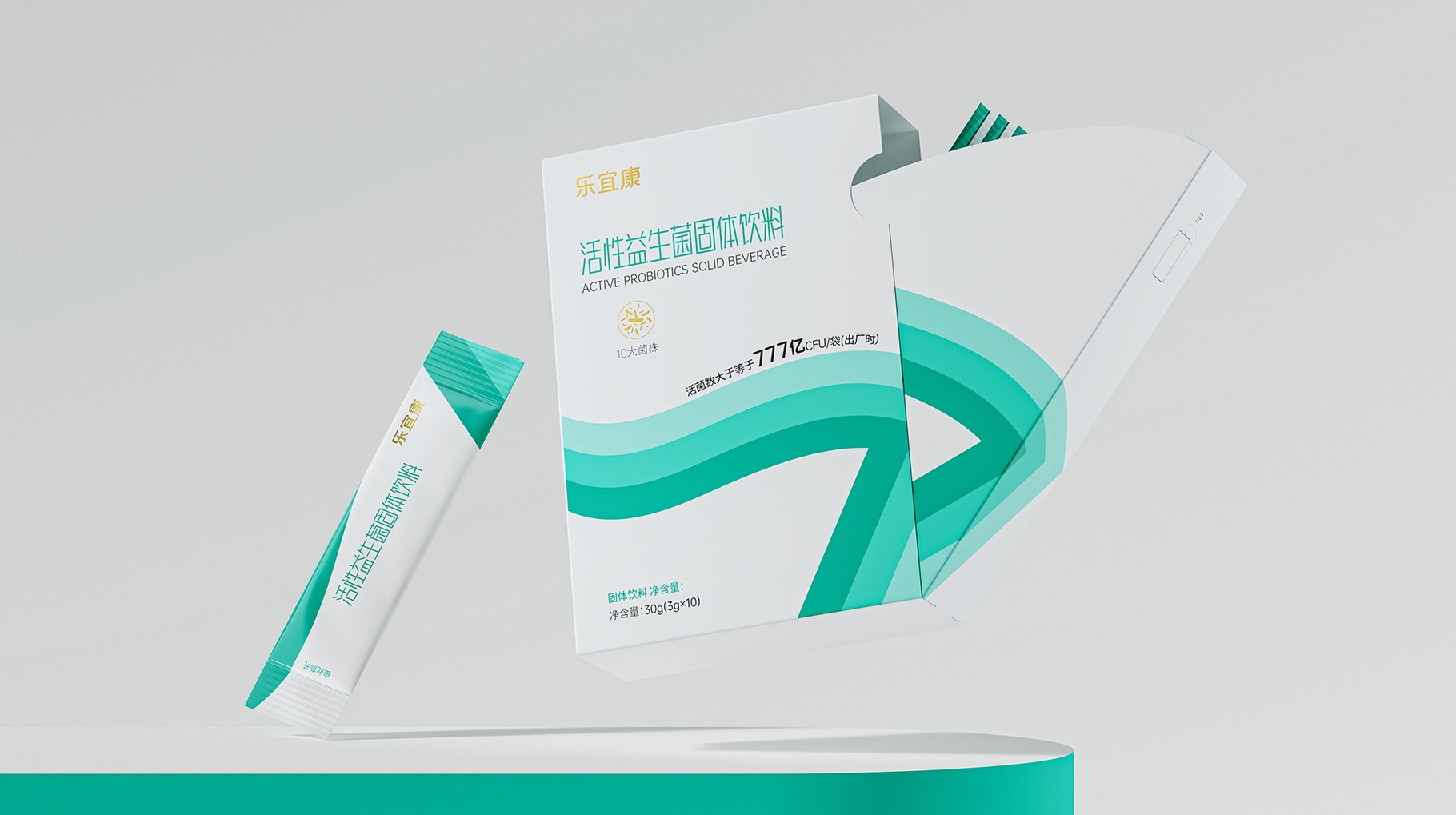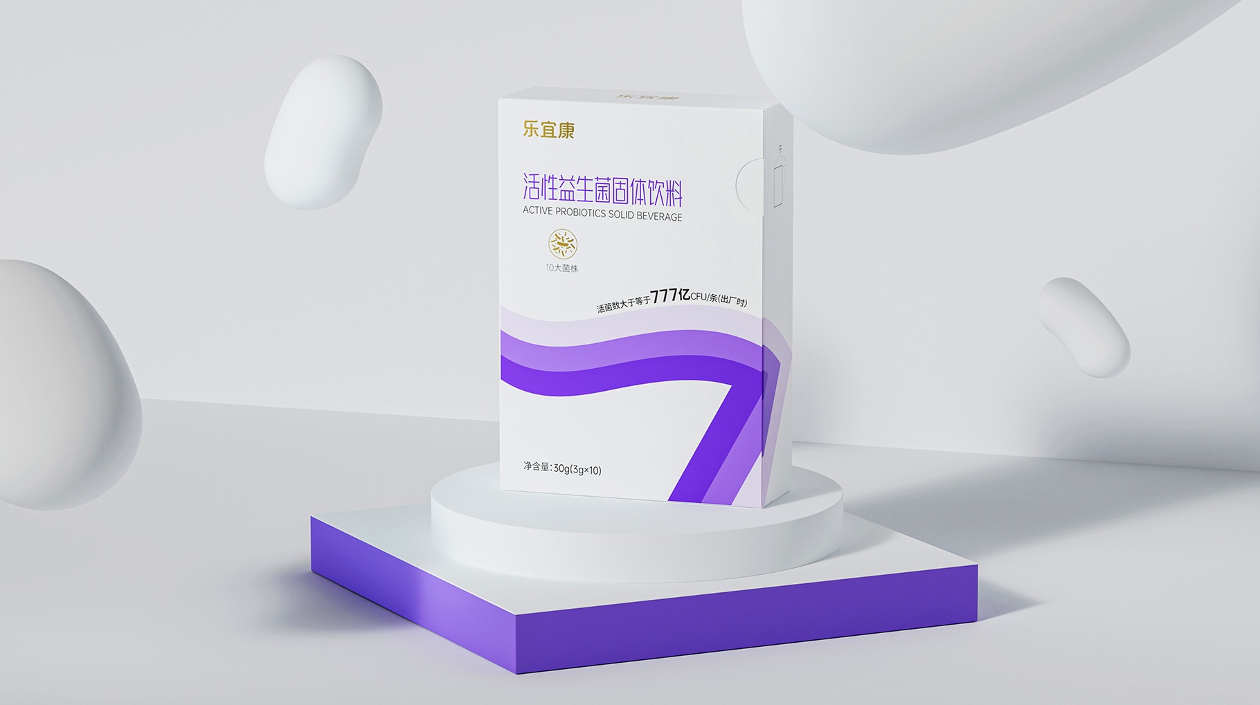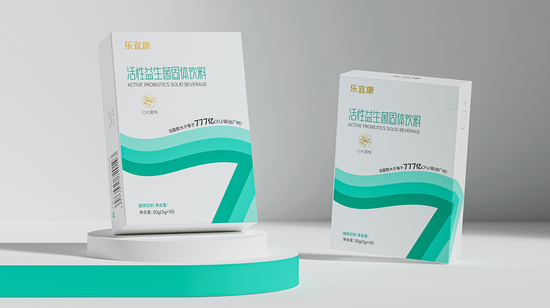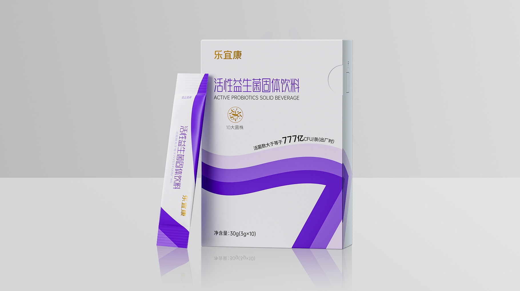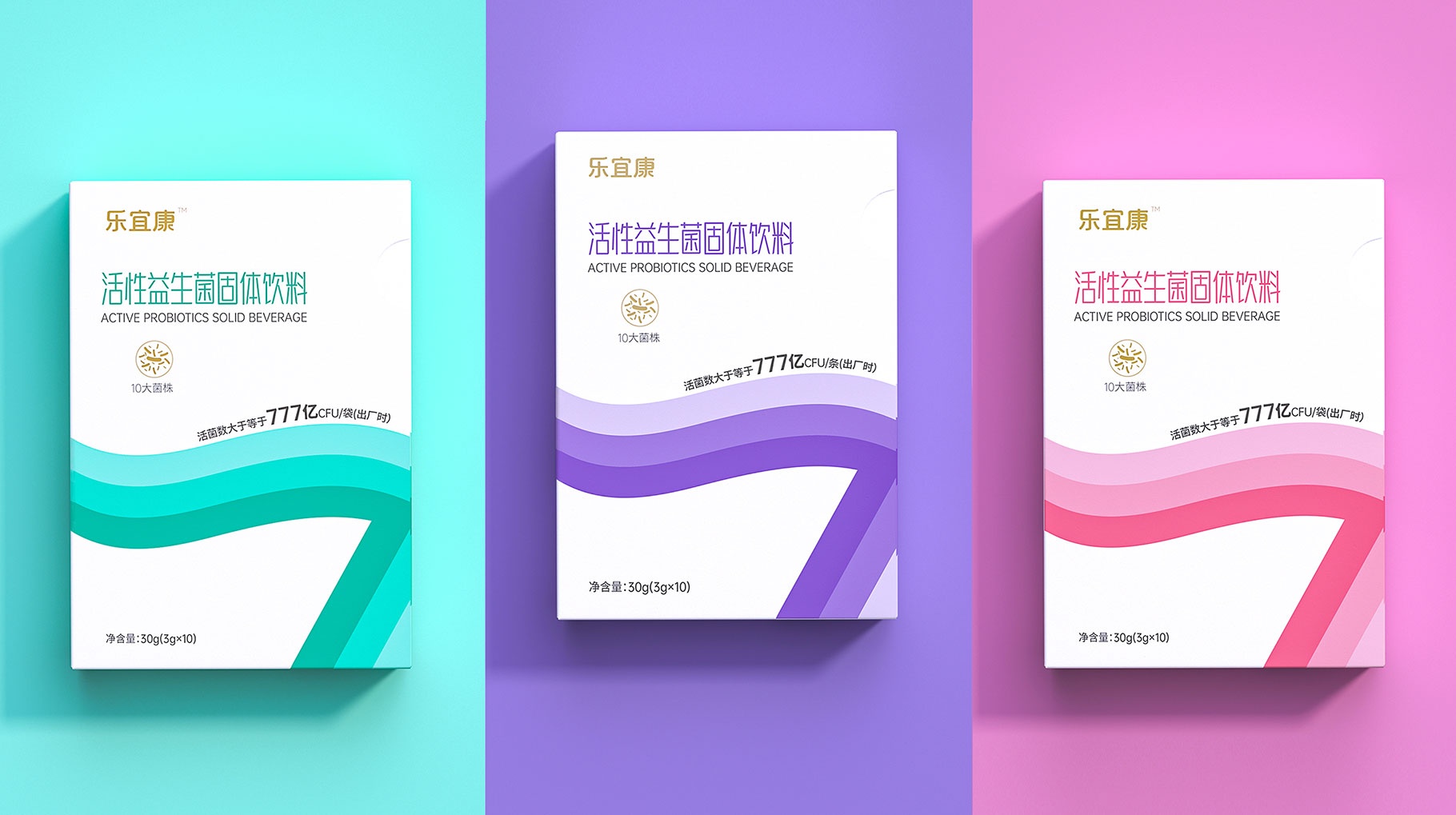 在消費市場中產(chǎn)品最直接有效的傳播是清晰的認(rèn)知識別符號,樂宜康益生菌產(chǎn)品的整體包裝設(shè)計創(chuàng)意以:簡約、干凈、大氣的三個“7”符號創(chuàng)意的律動符號,與賣點價值完美融合,讓其在消費市場快速的被消費者所認(rèn)知。