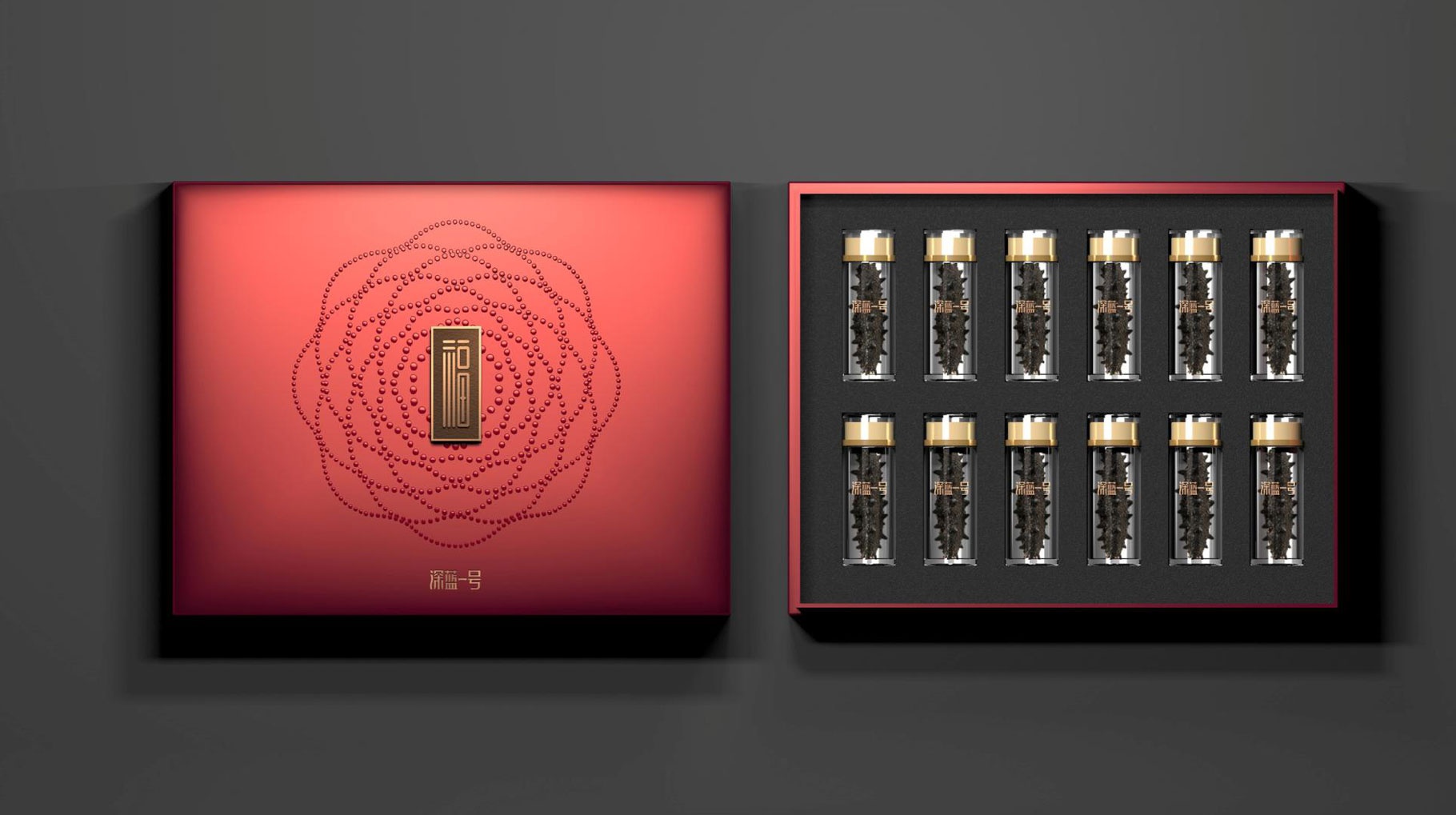 此次品牌整體包裝形象設計,以打造具有東方美學的質地文化作為出發點,結合高端禮品所需要承載的氣質和儀式感,設計出具有高品質的海參禮盒包裝。