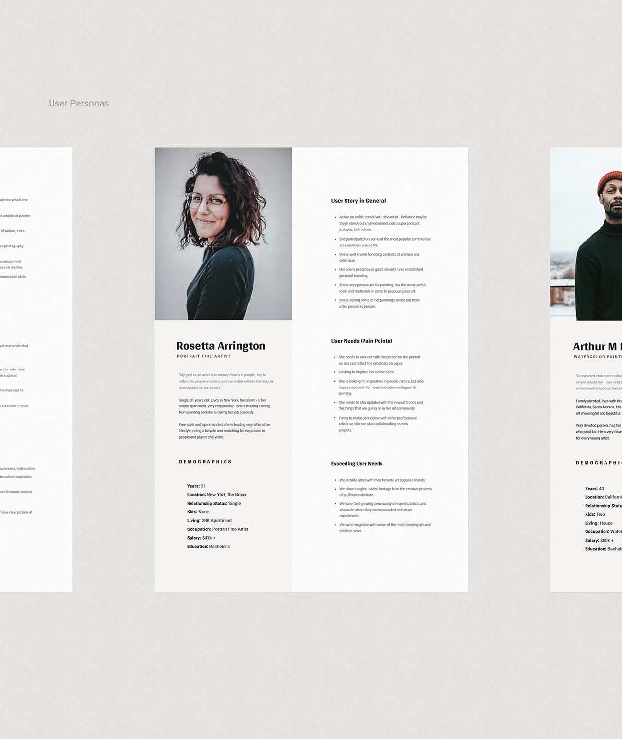 “無論你是畫家,雕塑家,剪貼簿師還是建筑師,你總是從空白的畫布開始,用你的想象力填寫它”Crafty88真的是關于這一點,是藝術家的起點和工具。在我們為此項目設定目標后,我們概述了理想的用戶角色,并定義了品牌屬性。我們努力吸引的客戶是專業藝術家,他們毫不猶豫地使用高質量的工具和材料。
