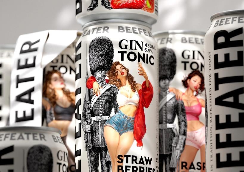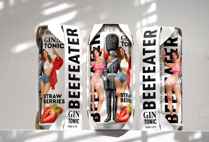 在設計師的巧妙構思下,包裝上的每一細節都在傳遞著品牌的強烈個性和鮮明特色。從傳統的倫敦衛兵到現代感十足的水果圖案,每一元素都恰如其分地展現了Beefeater金酒與湯力水的完美結合。